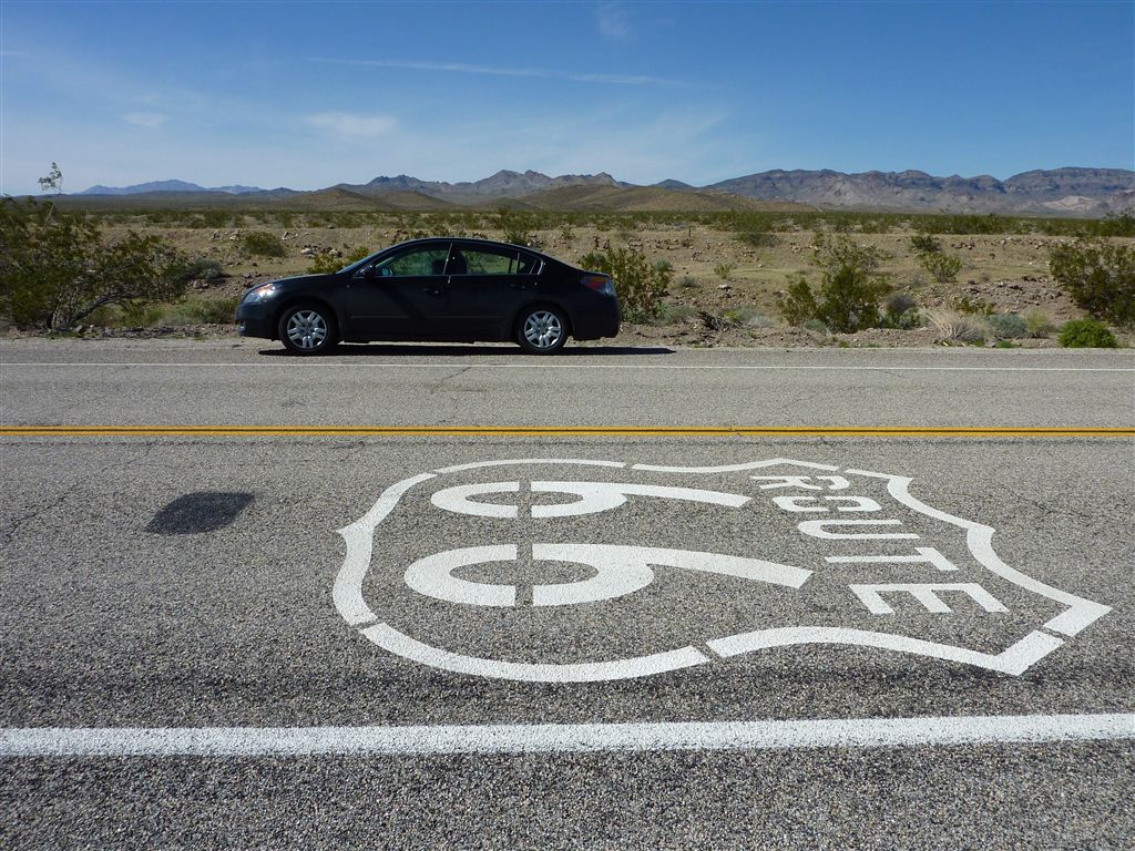 16. März 2010Um uns einen Aufenthalt irgendwo zwischen hier und dem Grand Canyon zu sparen, fuhren wir heute über 600 Kilometer bis zum Joshua Tree Nationalpark. Über 100 Kilometer fuhren wir dabei auf der legendären Route 66, die allerdings schon etwas in die Jahre gekommen ist.