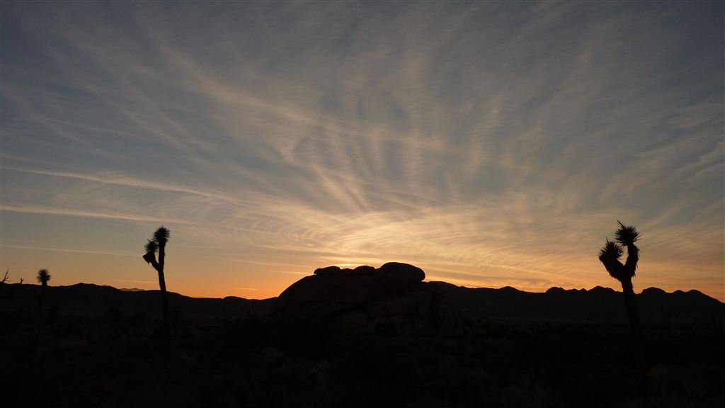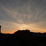 Die Temperaturen sind schon wieder auf 25 Grad gestiegen und auch das Wetter hielt sich prächtig. Im Dorf Joshua Tree fanden wir unsere Unterkunft für die Nacht in einem günstigen Motel. Einen ersten Abstecher, in den von speziell geformten Steinen und unzähligen Joshua Trees gesäumten Park, unternahmen wir beim Sonnenuntergang.