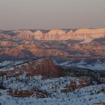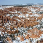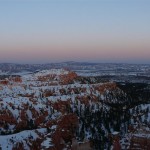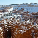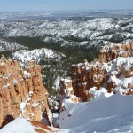 13. März 2010Der Bryce Canyon ist klein, aber eindrücklich. Auf 2000 bis 3000 Meter gelegen, präsentiert er sich zurzeit ziemlich winterlich. Bis auf wenige Aussichtspunkte war aber die Hauptstrasse durch den Park geöffnet. Die Ausblicke mit den teils schneebedeckten Felsen waren ganz besonders. Der Himmel war strahlend blau und die Temperaturen um den Gefrierpunkt.