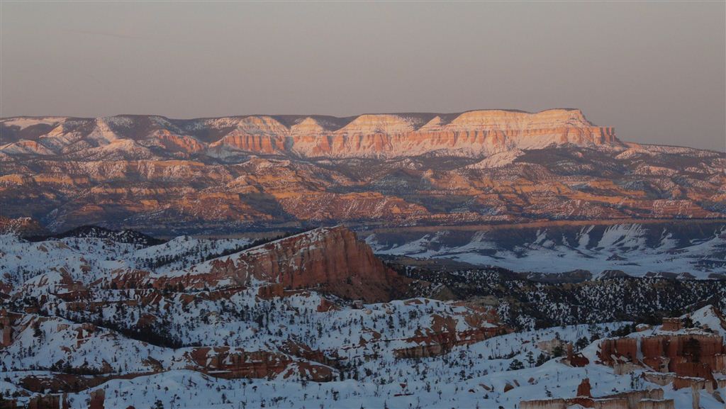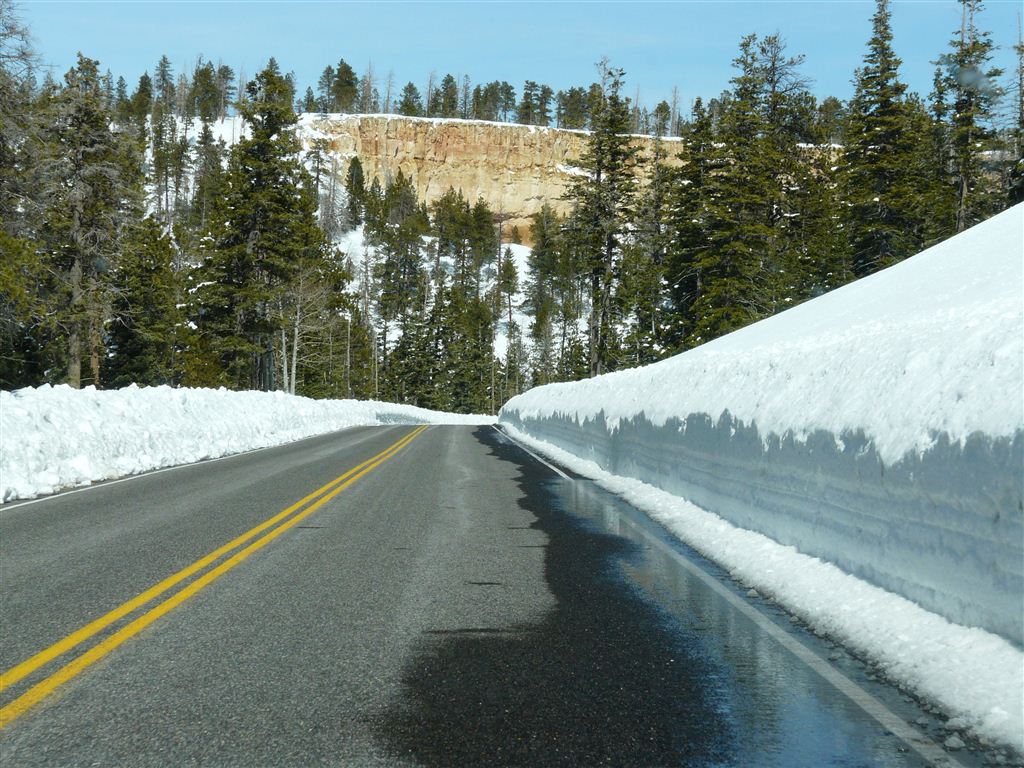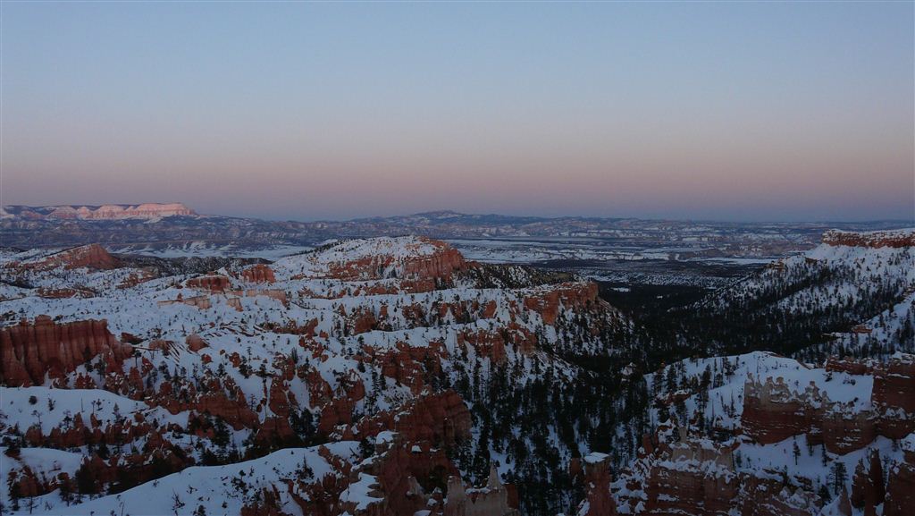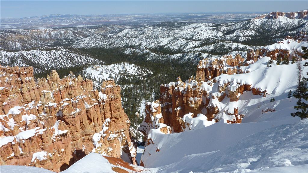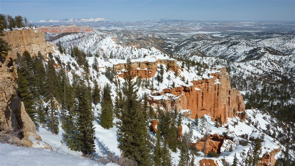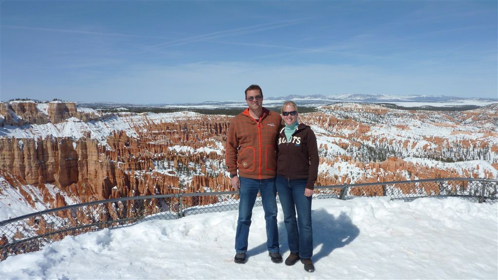13. März 2010Der Bryce Canyon ist klein, aber eindrücklich. Auf 2000 bis 3000 Meter gelegen, präsentiert er sich zurzeit ziemlich winterlich. Bis auf wenige Aussichtspunkte war aber die Hauptstrasse durch den Park geöffnet. Die Ausblicke mit den teils schneebedeckten Felsen waren ganz besonders. Der Himmel war strahlend blau und die Temperaturen um den Gefrierpunkt.