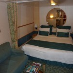 Nach etwas Herumwandern auf dem Schiff, konnten wir unsere Innen-Kabine auf Deck 8 beziehen Danach stärkten wir uns am Mittagsbuffet und genehmigten uns in der Bolero-Bar einen Aperitif. Wieder zurück in der Kabine war auch unser Gepäck eingetroffen und wir packten für einmal die meisten Kleider aus; für eine Woche lohnt sich dies allemal.