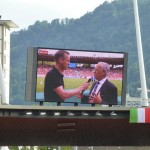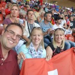 Angesteckt vom WM-Fieber waren wir am Donnerstag danach nochmals am Abend und dann mit Lena in der Stadt. Auf dem Sechseläuten-Platz stand das Swiss House und jeweils um 22 Uhr fand eine Lichtprojektion ans Opernhaus statt. Diese liessen wir uns nicht entgegen. Unsere Super-Plätze mussten wir dann aber nach kurzer Zeit aufgeben, da doch die Musik etwas übertrieben laut war für kleine Baby-Ohren.