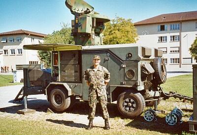 Im Vordergrund ein Ada*, im Hintergrund das Flt Gt 75/95* * Ada = Angehöriger der Armee * Flt Gt 75/95 = Feuerleitgerät von 1975, kampfwertgesteigert 1995
