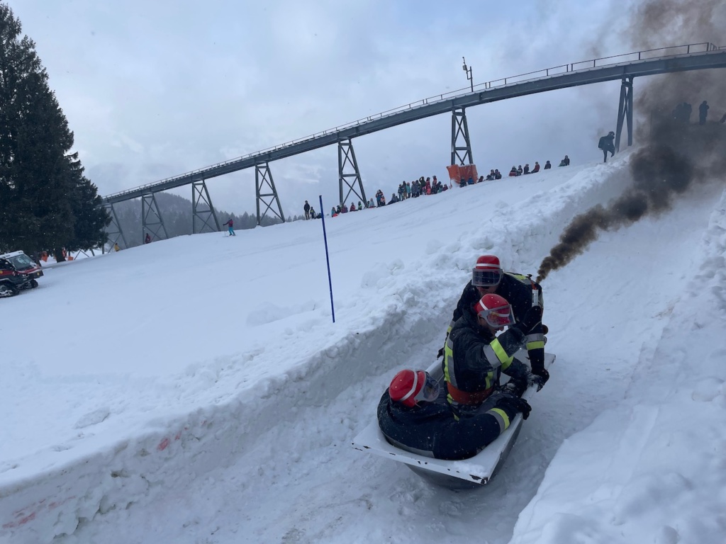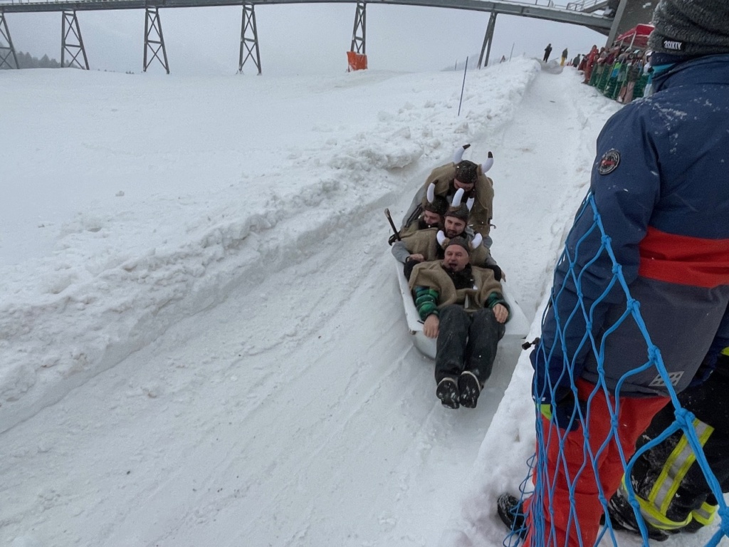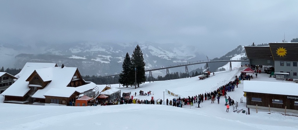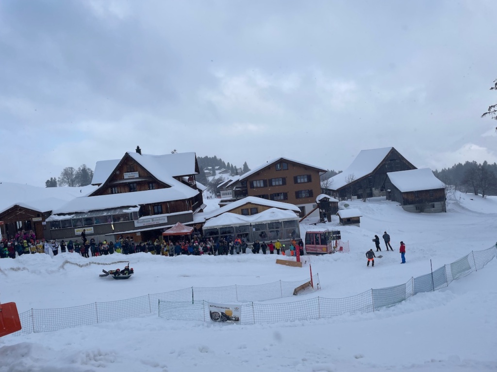 Nach einer Pause in der Stoos Lodge, startete beim Balmberg das Badewannen-Rennen. Das war lustig zum Zuschauen. In der Festwirtschaft stärkten wir uns mit Würstli + Brot. Weiter ging es an der unteren Sektion am Froni, oben hatte es dicken Nebel. Wir fuhren ca. 4x bis auch unten der Nebel ankam. Zurück im Alpstubli wechselten wir die Schuhe und verfolgten noch das Finale beim Badewannen-Rennen.
