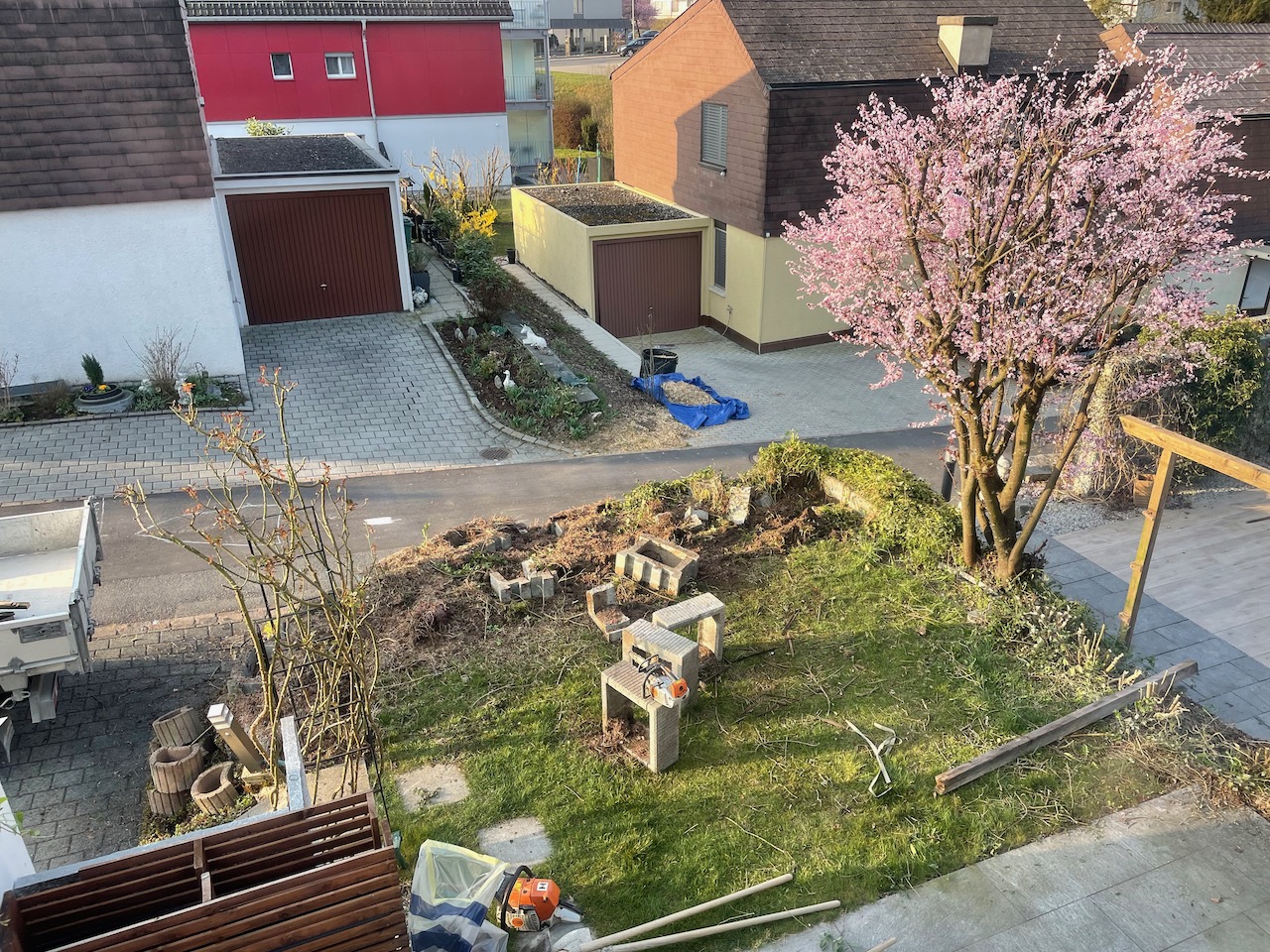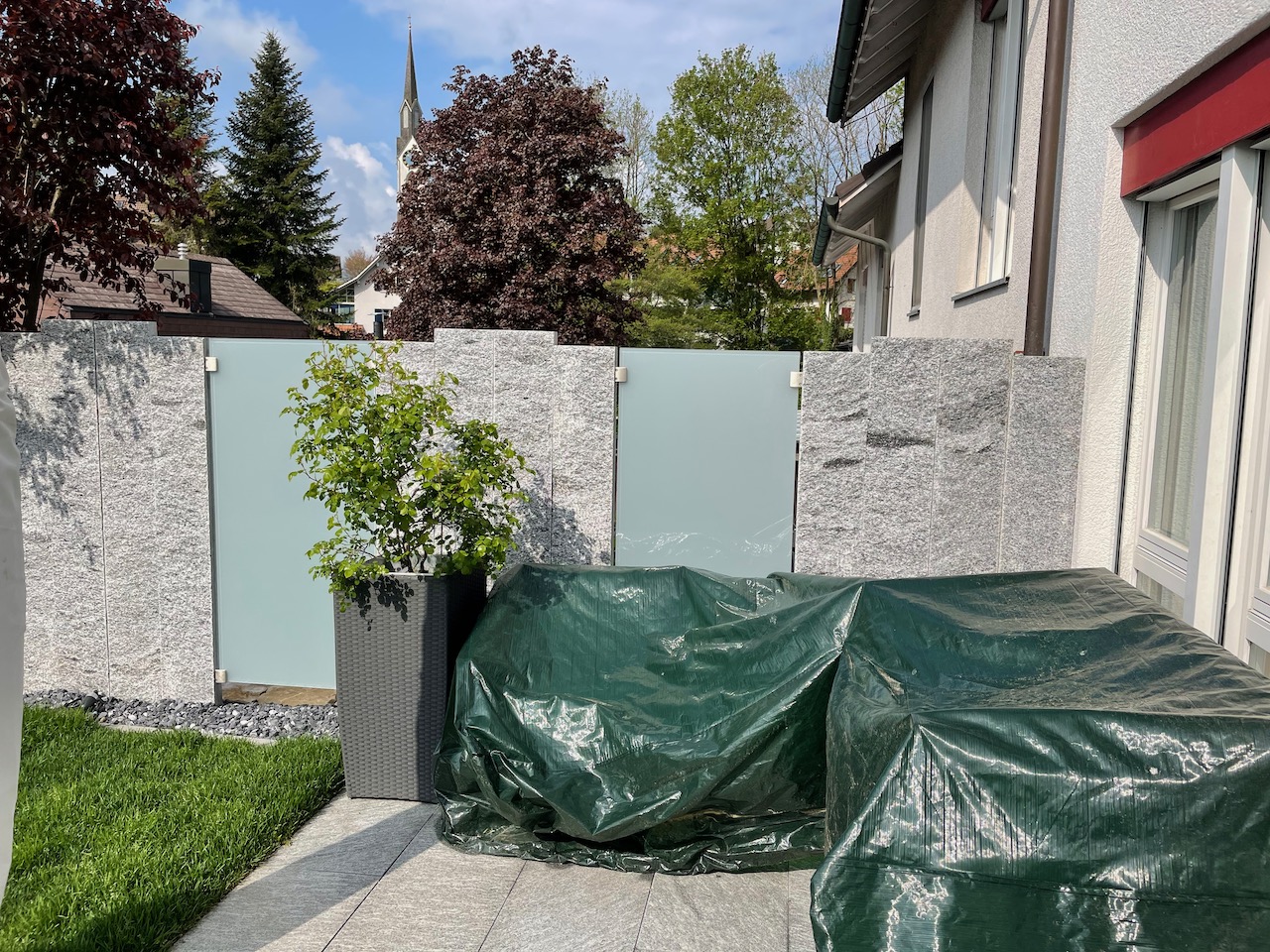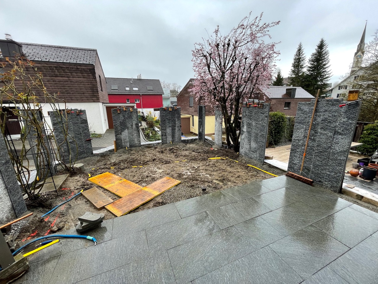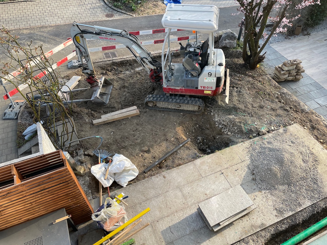 Nach dem unsere Tuja-Hecke jedes Jahr noch etwas erbärmlicher aussah, entschieden wir uns Anfangs 2022 den Sitzplatz neu zu gestalten. Mit der Firma Höhener planten wir den Umbau: