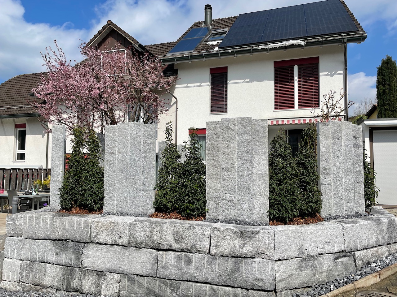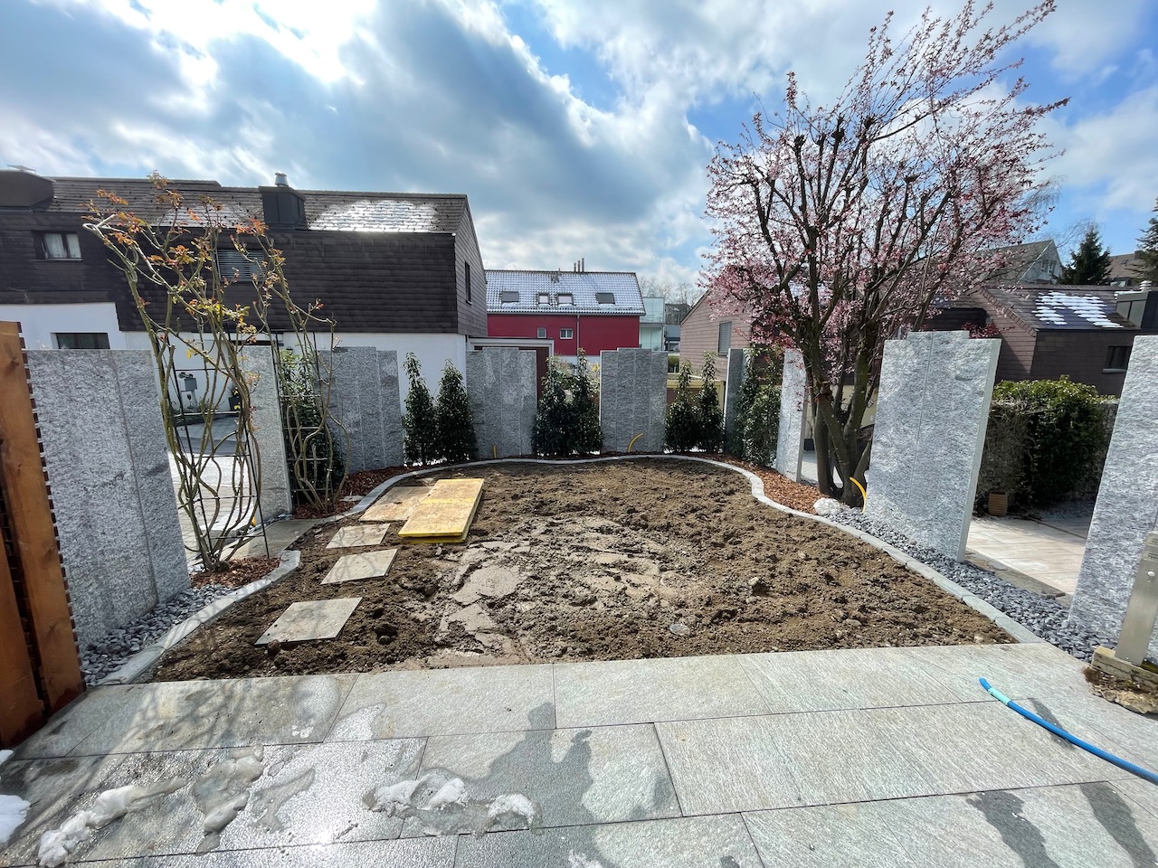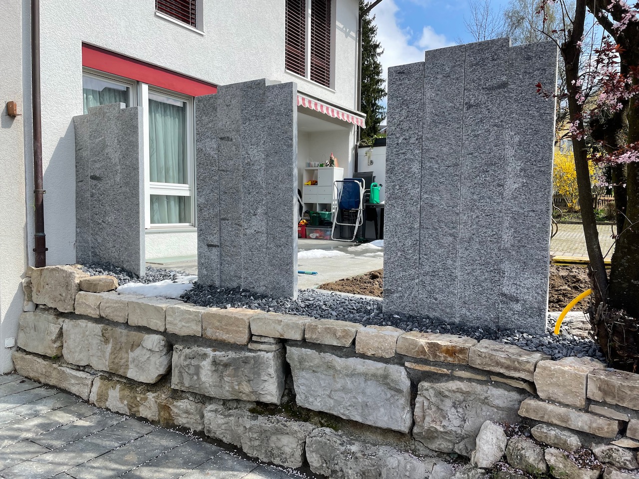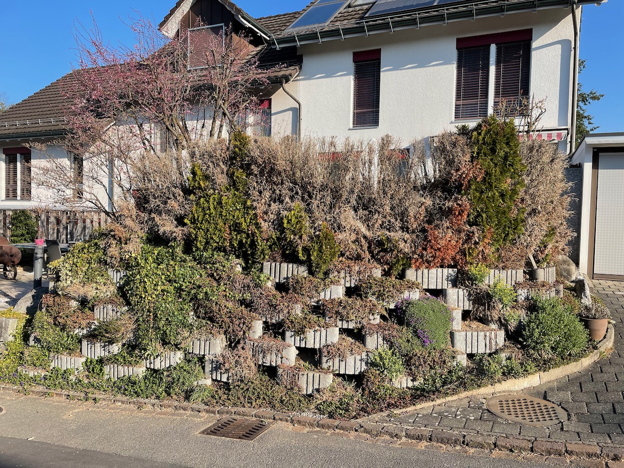 Nach dem unsere Tuja-Hecke jedes Jahr noch etwas erbärmlicher aussah, entschieden wir uns Anfangs 2022 den Sitzplatz neu zu gestalten. Mit der Firma Höhener planten wir den Umbau: