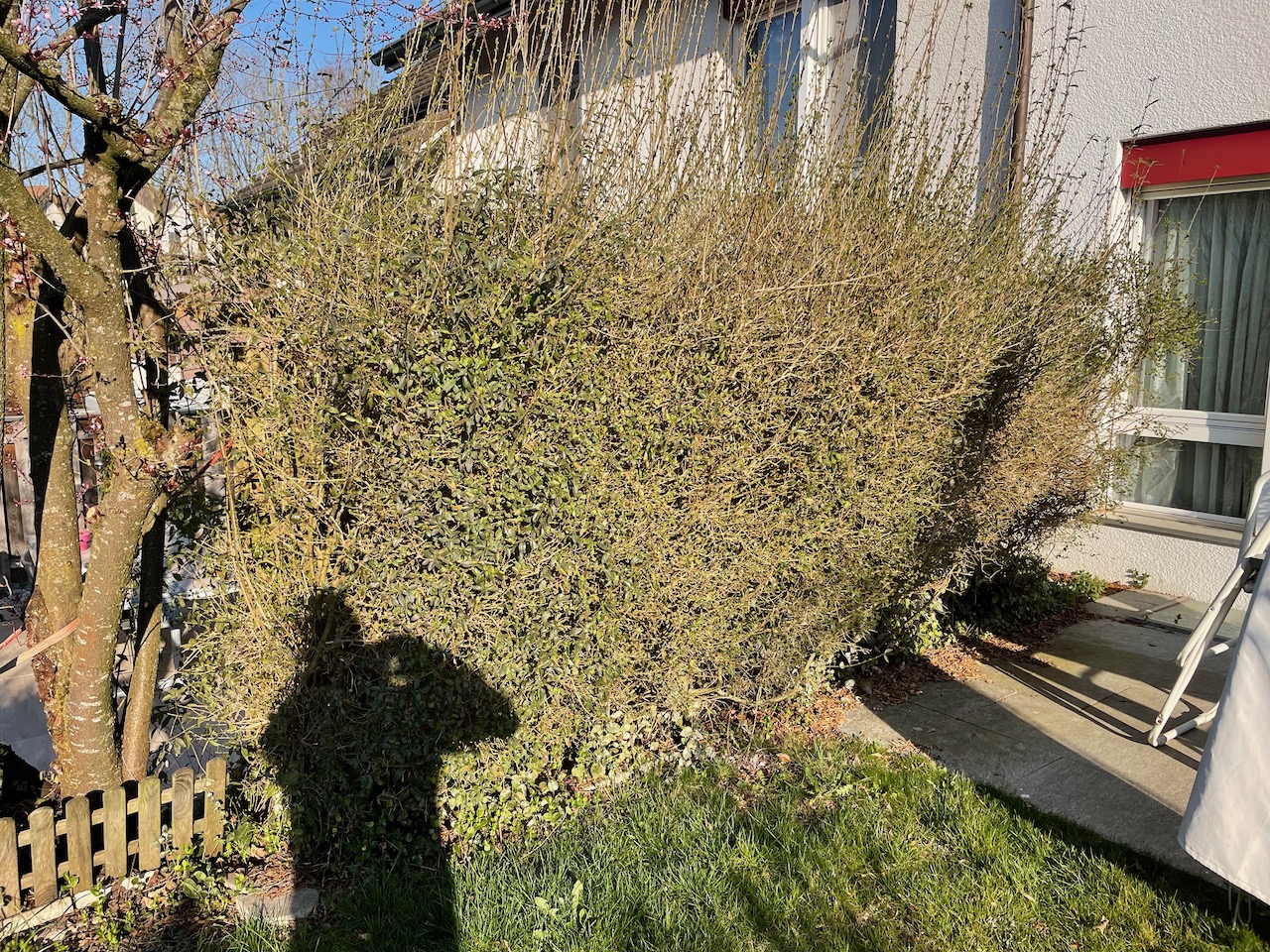 Nach unserem verlängerten Weekend in Hamburg, erwartete uns am Montag, 4. April schon ein fast fertiger Garten. Die Rasenkante war fertig verlegt, die Lorbeer-Sträucher gepflanzt und die Umgebung mit Schotter und Holzschnitzel gestaltet.