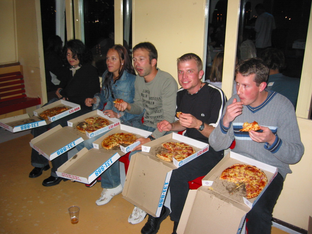 27. September 2002Am Donnerstagabend fand die Harbour Cruise Party statt. Wir stiegen in ein Partyschiff ein und dieses fuhr den ganzen Abend im Hafen von Sydney umher. Also so am Opernhaus vorbei und unter der Harbour Bridge durch. Zwischendurch gab es Pizza fuer alle und an der Bar erhielt man jederzeit seine Drinks and Beers.