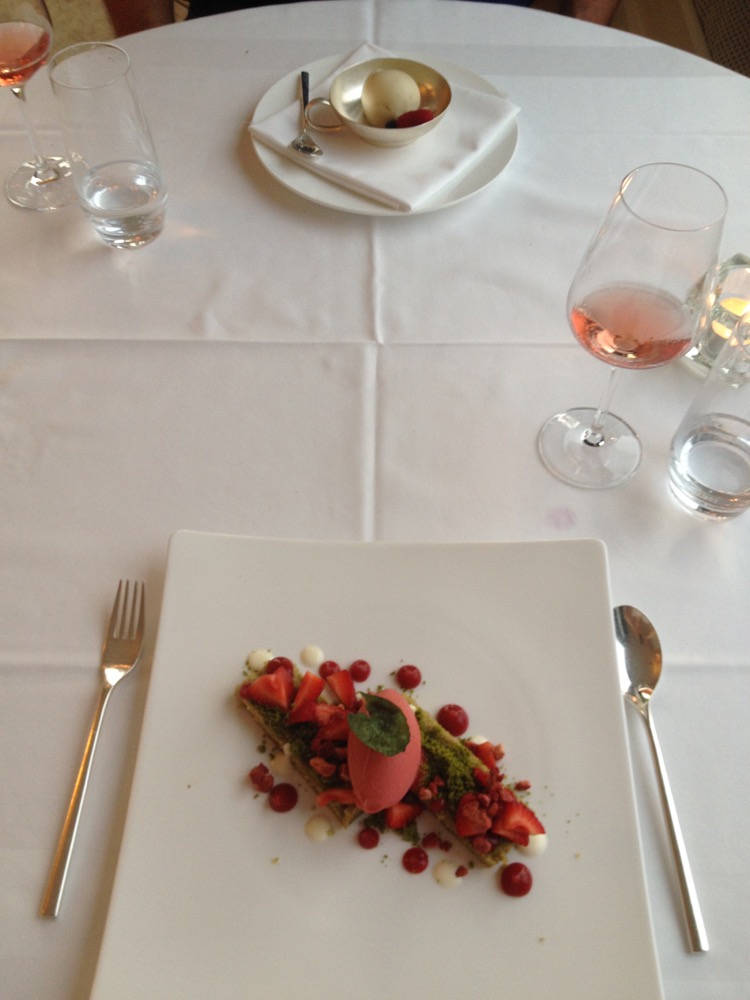 Wir genehmigten uns einen edlen Tropfen Rosé Wein, 3-Gänge und genügend Zeit: