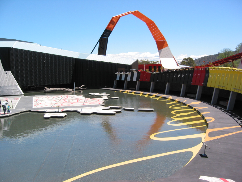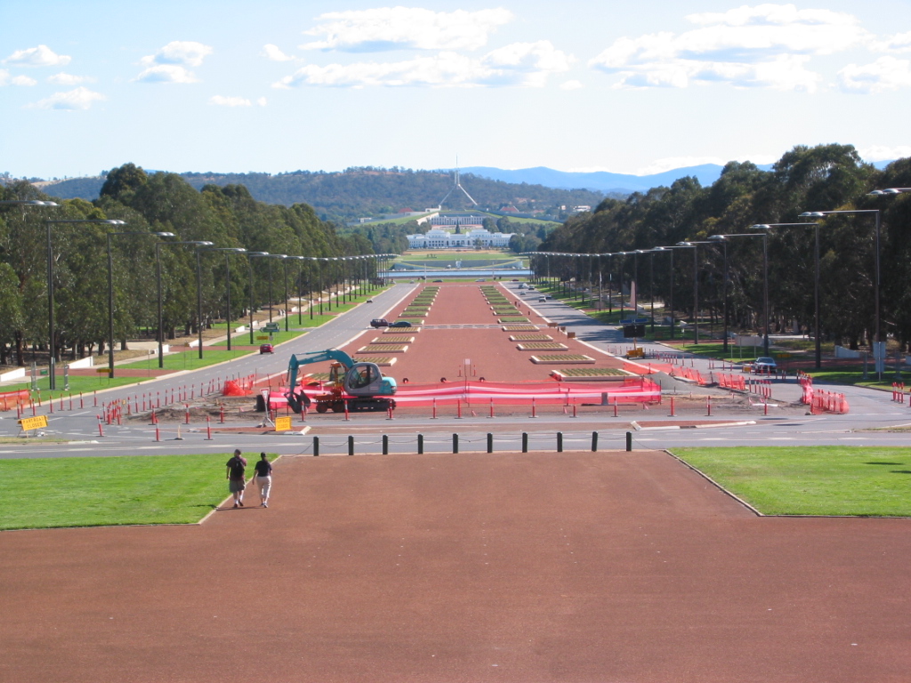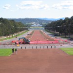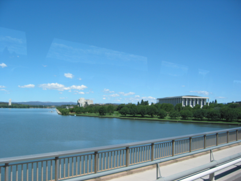 Am Sonntag ging der Tag fuer mich um 6 Uhr los. Eine 1-Tages Tour in die Hauptstadt Canberra stand auf dem Programm. Um 8.30 Uhr ging die Fahrt von Sydney los und dauerte 4 Stunden inklusive einem halbstuendigen Stop. Danach waren wir in der 300 Kilometer entfernten Hauptstadt. Zuerst besuchten wir das National Museum of Australia, gefolgt vom Parliament House (Regierungsgebaeude) und am Schluss noch das War Memorial (Kriegsmuseum). Die ganze Stadt ist eindruecklich mit vielen speziellen Gebaeuden. Das Wetter in Canberra war im Gegensatz zu Sydney sonnig und sehr warm. Nach knapp 5 Stunden mussten wir bereits wieder den Rueckweg in Angriff nehmen. Das war ein erster Eindruck von den riesigen Distanzen in Australien: 7 Stunden Busfahren, 600 Kilometer, in einem Tag.