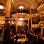 Am Nachmittag statten wir für fast eine Stunde dem grossen Fitness-Center einen Besuch ab. Danach galt es sich auf den ersten „Formal“-Abend vorzubereiten. Anzug und Krawatte für Dominik, Abendkleid für Daniela. Erfreulicherweise hat es nun auch mit dem „Main Seating“ geklappt und so konnten wir bereits um 18 Uhr in den dreistöckigen Speisesaal. Dort begrüssten wir unsere neuen Tischnachbarn; eine Familie aus Chicago und eine ältere Dame mit ihren 3 Töchtern aus Arizona und alle sind in einer Grande Suite untergebracht.