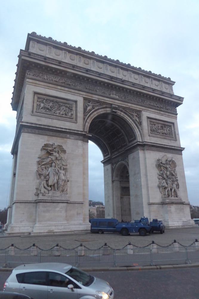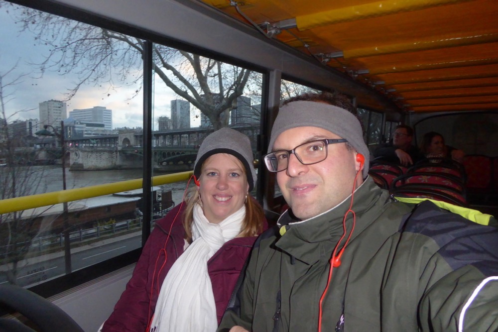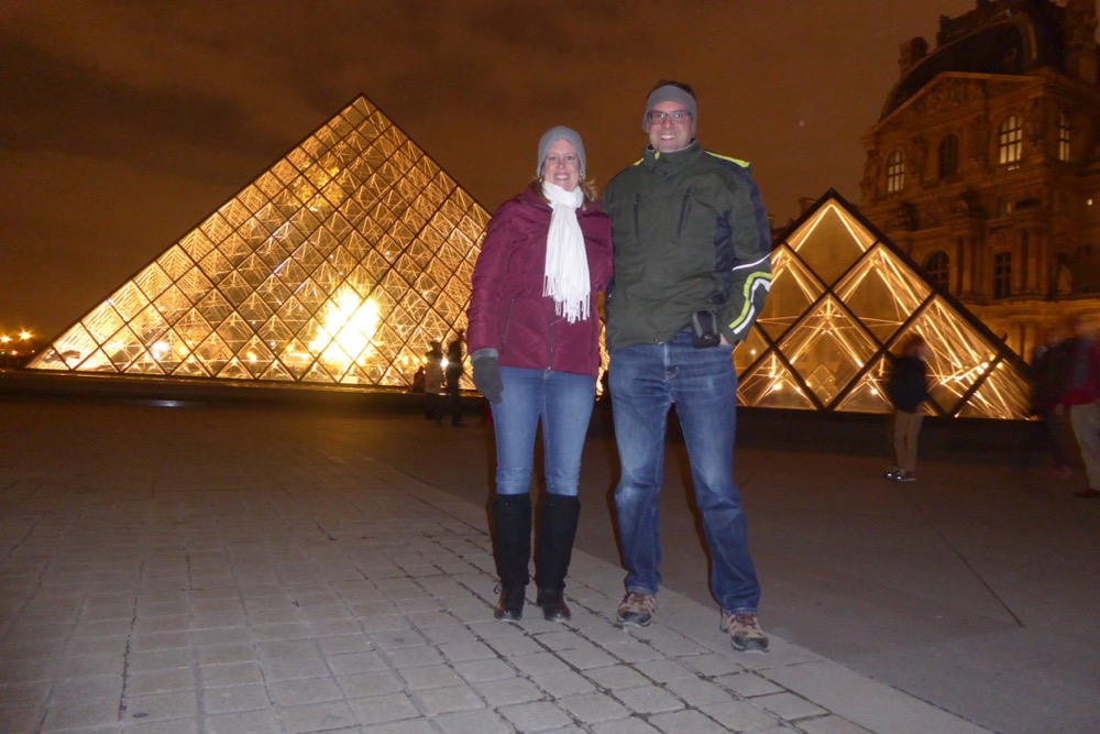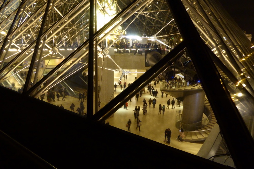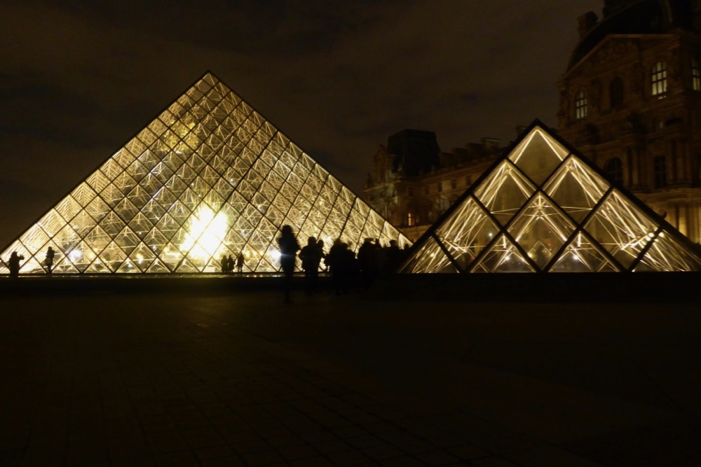 Um uns danach einen Überblick von Paris zu verschaffen, bestiegen wir einen Hop-on-Hop-off-Bus, der uns mehr oder weniger zügig durch den samstäglichen Abendverkehr chauffierte. Viel Polizei und Strassensperren erschwerten die Rundfahrt. Auch wenn wir keine entdeckten, die „Gilets jaune“ waren einmal mehr unterwegs. Nach 19 Uhr entschieden wir uns beim Louvre auszusteigen, bewunderten dort die beleuchteten Pyramiden und fast noch mehr die Hunderten von Leuten, die bei eisig, kaltem Wind noch Stunden ausharrten um ein evlt. Lächeln von Mona Lisa zu erhalten.