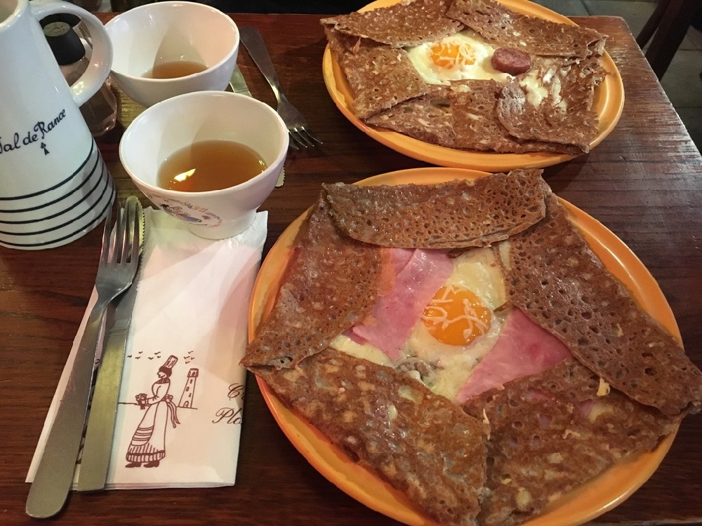 An diesem Samstag war in Frankreich „Tag der Crêpes„, was uns veranlasste gleich in die „Rue Montparnasse“ zu fahren, eine Strasse mit vielen Crêperien. Für uns gab es eine währschafte Crêpe mit Ei, Schinken und Käse als Mahlzeit und eine Süsse danach. Dominiks kam sogar flambiert.