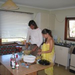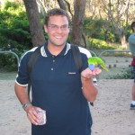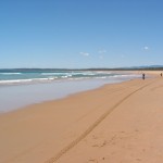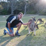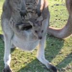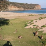Untergebracht waren wir im Beach Haus von James, dem Organisator des Trips. Er stellte uns sein komplettes Haus inklusive Surf-Ausruestung zur Verfuegung. Am Samstagmorgen zogen alle ihren Neoprenanzug an und bekamen ein Surfboard unter den Arm. Nach einem 5-minuetigen Fussmarsch waren wir an einem Traumstrand: ungefaehr 10 Kilometer lang und fast menschenleer. Das Wasser war wie gewohnt nur etwa 16 Grad, aber mit dem Neoprenanzug kein Problem. Wir versuchten etwa 3 Stunden lang zu surfen und kamen zu einigen kleinen Erfolgen, aber so richtig klappen wollte es nicht. Am Nachmittag fuhren wir mit dem Minibus zur Pebbly Beach. Dort hat es einen Nationalpark, wo es jede Menge wilde Kangueruhs gibt. Diese konnte man fotografieren und sogar beruehren.