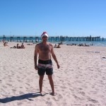 27. Dezember 2002Am 25. Dezember war ich am Strand mit einigen Freunden von der Schule, die sich auch gerade in Adelaide aufhielten. Einige waren mit roten Zipfelmuetzen ausgeruestet und in der Mitte der Gruppe stand sogar ein kleiner „Christbaum“. Dazu kam vom CD-Spieler noch Weihnachtsmusik. Das war wirklich ein spezieller Weihnachtstag. Fast 30 Grad, Strand und zwischendurch eine Abkuehlung in den Wellen.