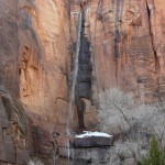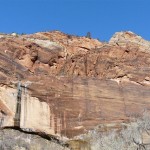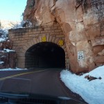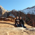 Wir entschieden uns, anstatt direkt zum Bryce Canyon durchzufahren, noch für einen Abstecher in den „Zion National Park“. Eine Strasse führte tief in die Schlucht hinein; links und rechts türmten sich hohe Felsen. Die Temperatur war merklich gesunken und bewegte sich nur noch um die 5 Grad. Da uns nun etwas die Zeit davonlief, gab es auf dem Parkplatz „Darvida“ und die noch übriggebliebenen M&Ms (siehe Las Vegas) zum Zmittag. Auf der gleichen Strasse ging es zurück und danach weiter nach oben.