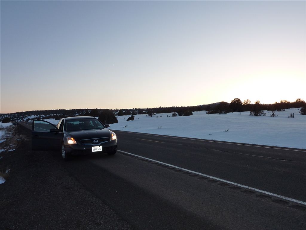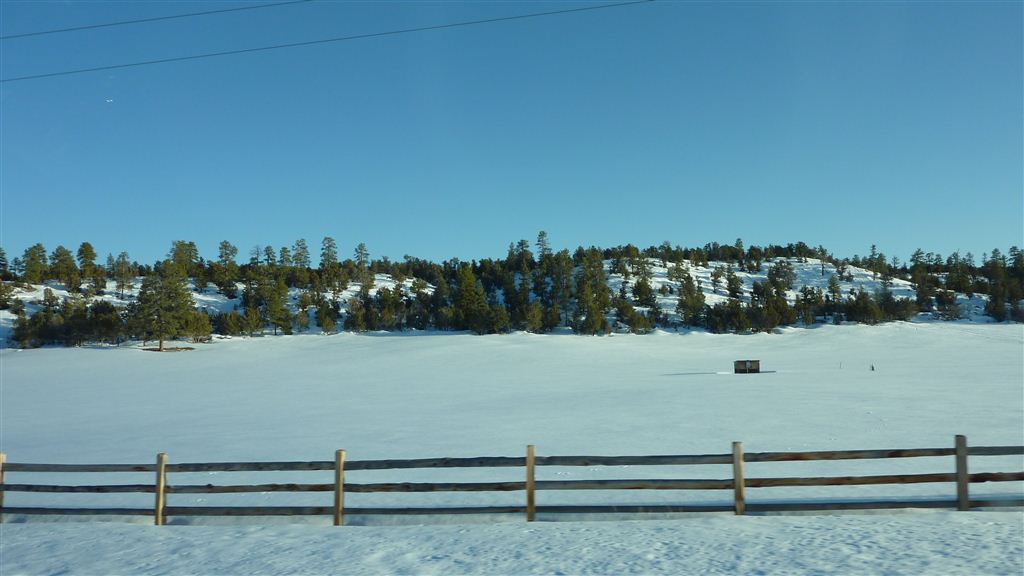 Nach 16 Uhr brachen wir auf und fuhren durch tiefverschneite Landschaften zu unserer Unterkunft beim Bryce Canyon. Irgendwo auf der Fahrt in den Bundesstaat „Utah“ verloren wir noch eine Stunde, was uns erst auffiel als alle Uhren im Hotel „vorgingen“.