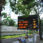 Noch was zu den Temperaturen hier. Kaum ist man eine Minute draussen, faengt man an zu schwitzen. Es ist wirklich tropisch hier. Sobald man irgendwo hinein geht, ob jetzt Restaurant, Laden, MRT oder Hotelzimmer wird es 10 oder 15 Grad kuehler, weil alles mit Klimaanlagen ausgeruestet ist.