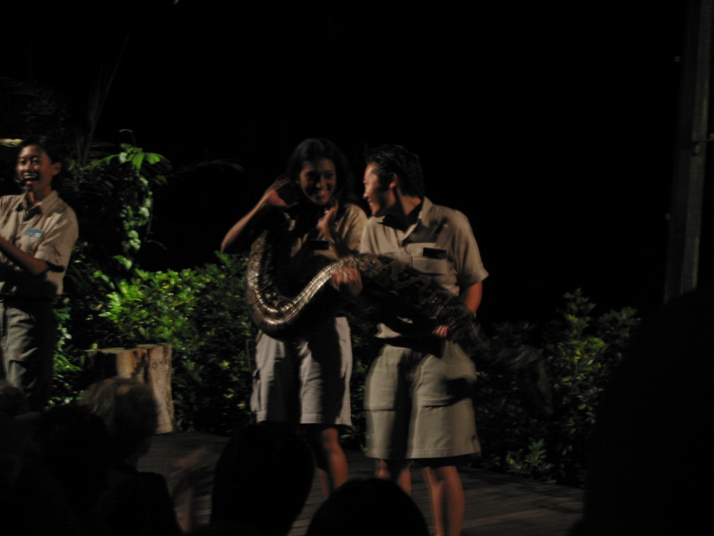 Ich ging nun wieder Shoppen und spaeter ins Hotel zurueck. Um 17.30 Uhr startete die Nachtsafari. Nachdem der Car alle Touristen aufgesammelt hatten, erreichten wir nach kurzer Fahrt die Nachtsafari. In duesterem Licht konnte man viele „wilde“ Tiere sehen. Loewen, Elefanten, Nashoerner und mehr. Leider wars fast nicht moeglich diese zu fotografieren, da kein Blitz erlaubt war. Um 22.30 Uhr war ich zurueck im Hotel und wieder ziemlich muede.